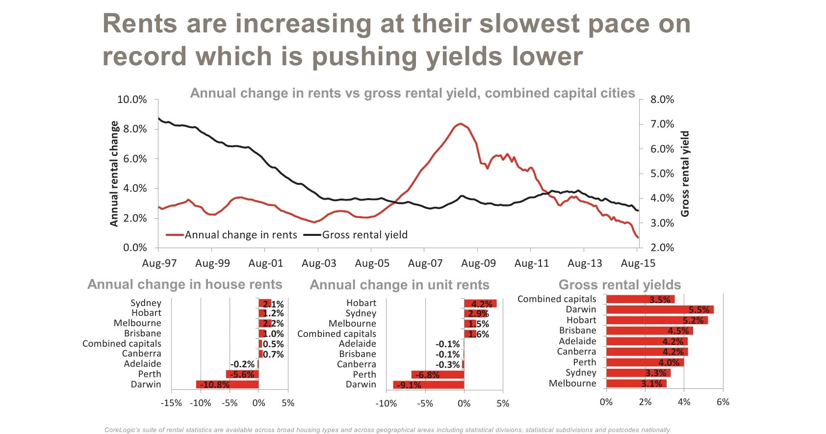 /Recent data released by Core Logic RP Data confirm the long term trend decline in real rental returns.